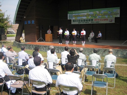 ![]() 長岡地区エリア 2014・第65回全国植樹祭開催記念 『緑の百年物語フェスティバル&長岡みどりフェスタ(秋の章)』を平成24年9月30日(日)、長岡市千秋が原ふるさとの森で開催しました。平成26年春に長岡市をメイン会場に開催される全国植樹祭をPRしたほか、公園内に広葉樹(ブナ、コナラ、クヌギ)の苗木100本を植樹しました。 |
