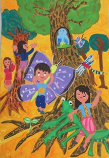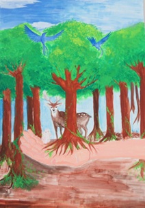 村上市立神納小学校 6年 鈴木 さくらさん (すずき さくら) 令和6年度 村上地域の「未来に向けてつなげよう木育」事業 「第11回小学生標語・絵画コンクール」絵画の部 最優秀賞