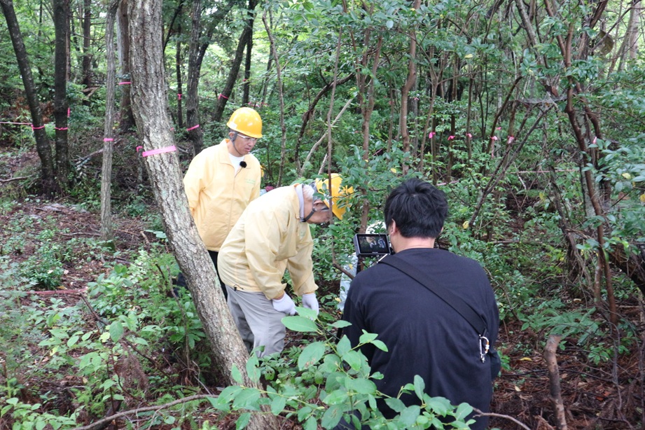 この模様は後日当委員会YouTube公式チャンネルにて公開を予定していますが、平山理事長も動画ナビゲーターのタレント「ヤンさん」と除伐作業に汗を流し、佐渡スギを使った時計作りにチャレンジしました。